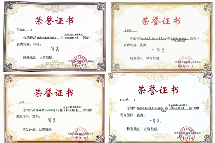在2025年“美丽安徽我来解说”大赛中,李晗玥、余书然、任雨、王圣斌、李金金五位同学更是凭借出色表现勇夺一等奖,周逸昕获二等奖,徐海波等五位同学获三等奖,为宣讲团再添光彩一笔。正如团队成员在赛事阐述中所言:“我们站在徽州古村落的天井之下,不仅看见飞檐斗拱的建筑美学,更解码出‘四水归堂’所蕴含的聚财守德、耕读传家的现代伦理价值。”这种将地域文化基因与社会主义核心价值观相衔接的实践,使传统文化成为滋养青年家国情怀的“精神根系”。