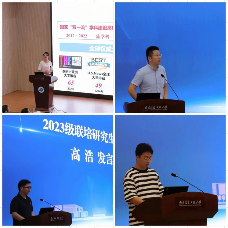 南京信息工程大学研究生院副院长王敏介绍研究生培养情况,导师代表倪海彬、2023级联培研究生代表高浩、2024级联培研究生代表汪皓然依次发言。